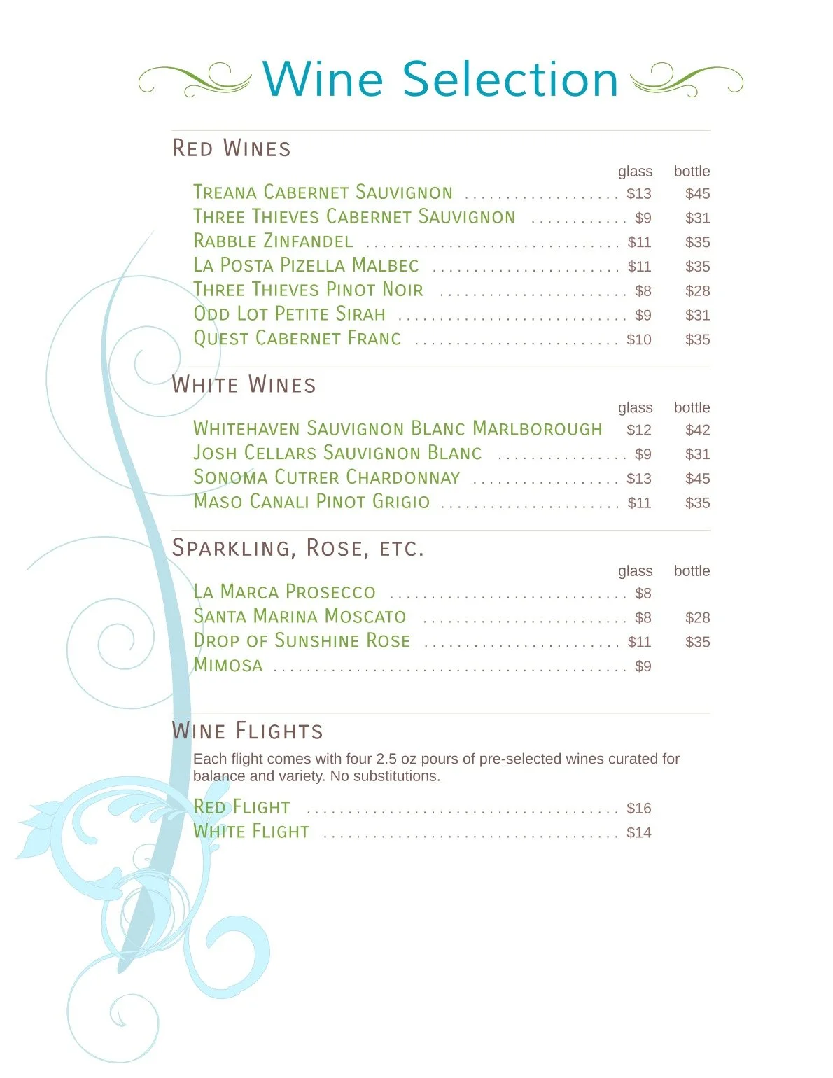 Wines & N/A Options